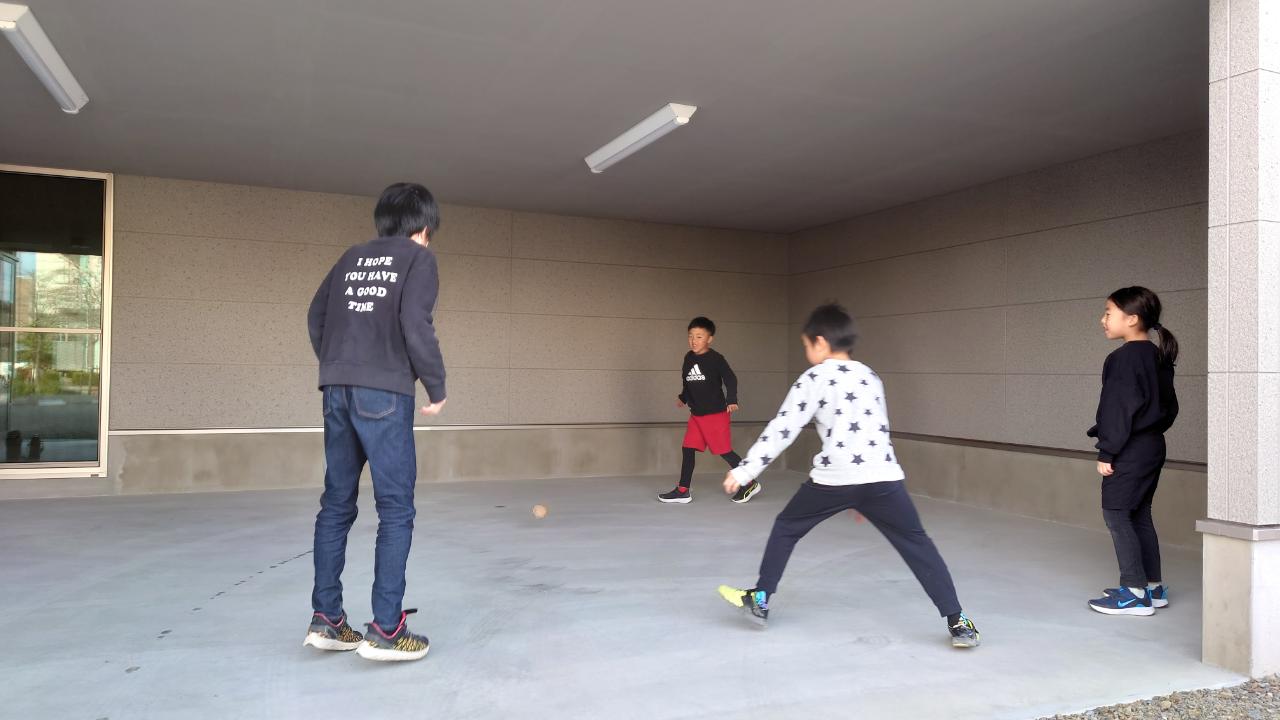 玄関前のスペースで『新聞ボール壁当て』をしていました(笑)。
