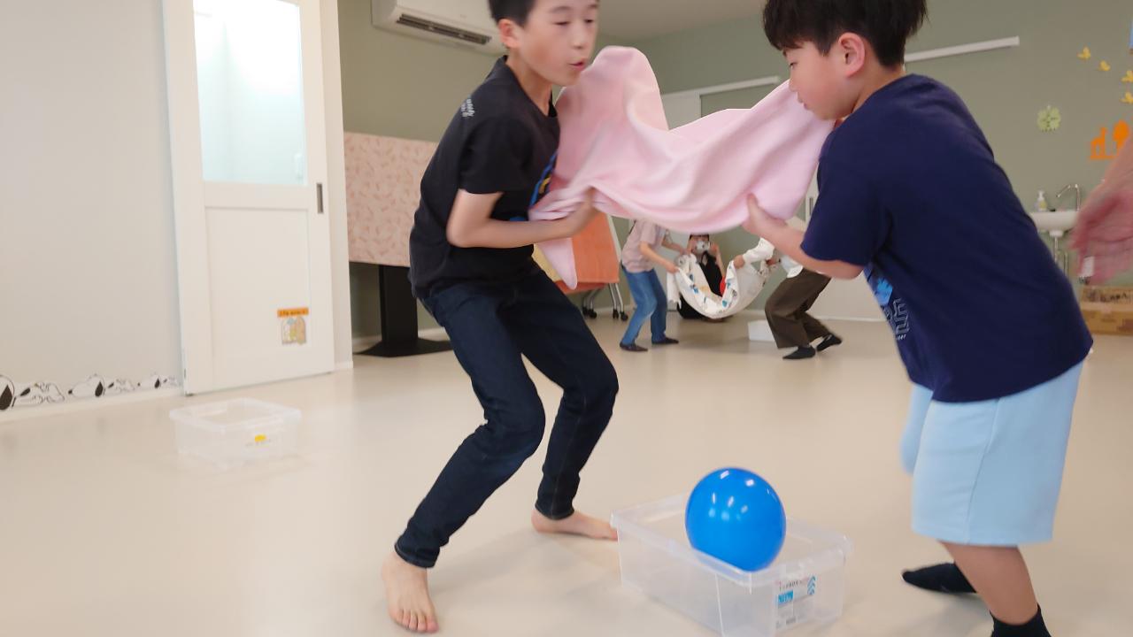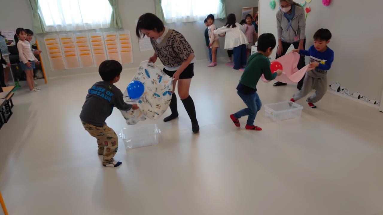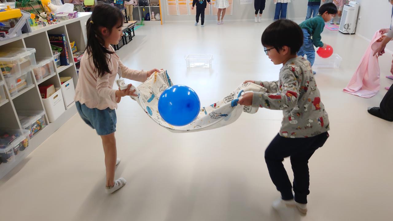 1年生のみんな遊びでも取り入れた風船を使って、