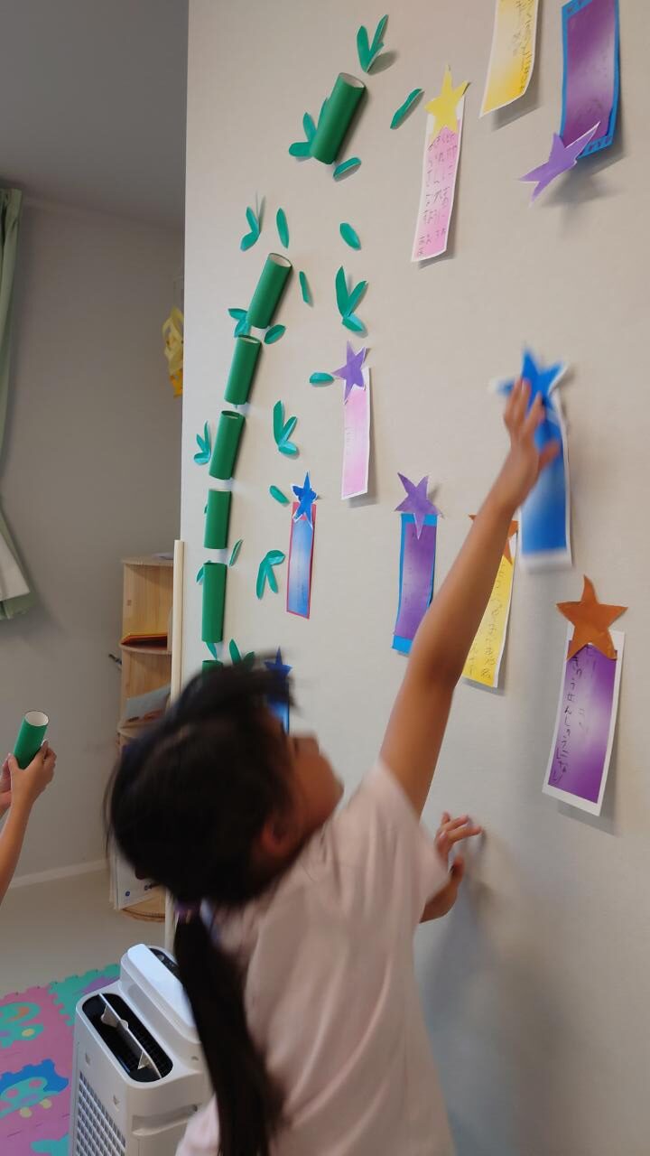 短冊は、子どもたちがそれぞれ好きな色を組み合わせて、自分だけの短冊を作りました!