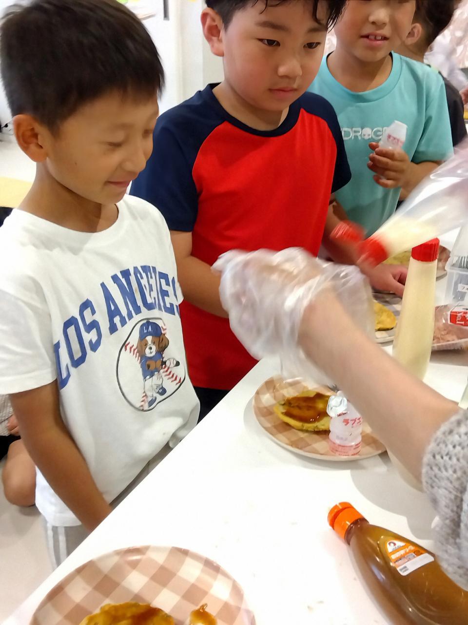 「ケチャップとマヨネーズを混ぜたらおいしいで!」の声でみんなが実験開始でした(笑)