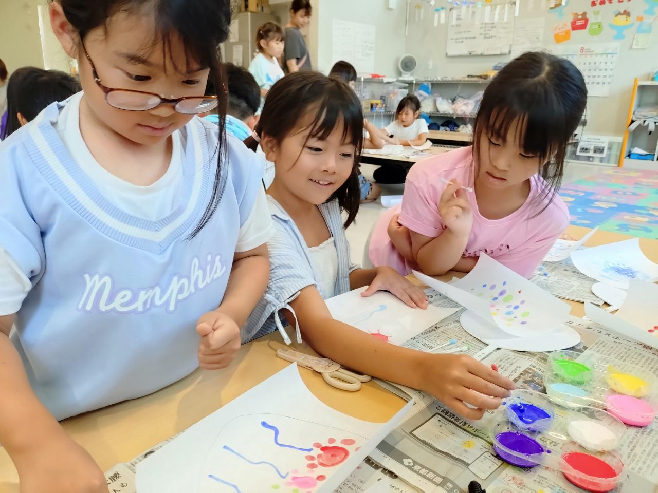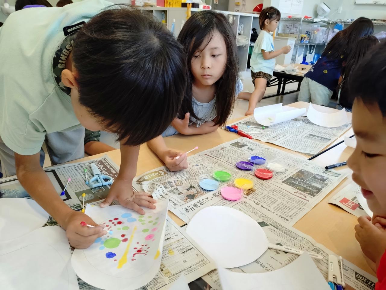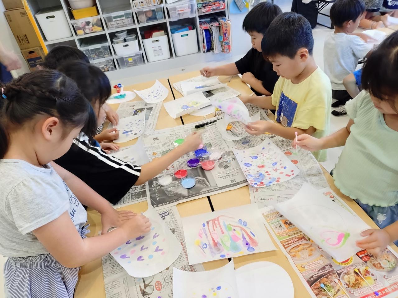 8月4日(月)、夏休み工作で『にじみ絵うちわ』の製作をしました!
