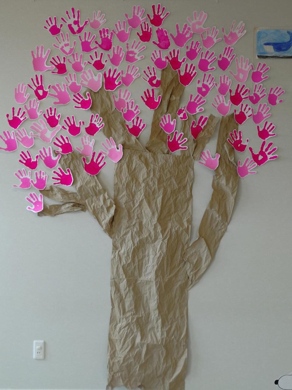 みんなの手型を桜に見立て、満開の桜の木になりました!